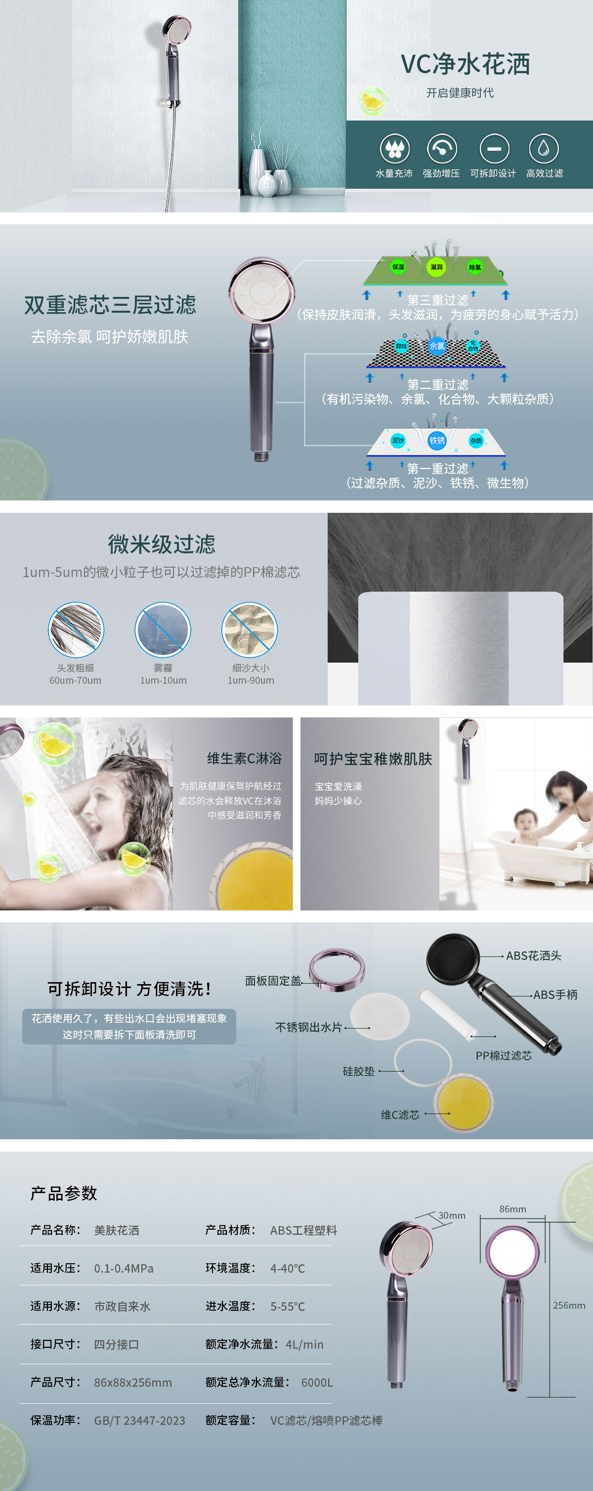 商品亮点:节水增压,深层过滤,护发美肤,滤芯可替换