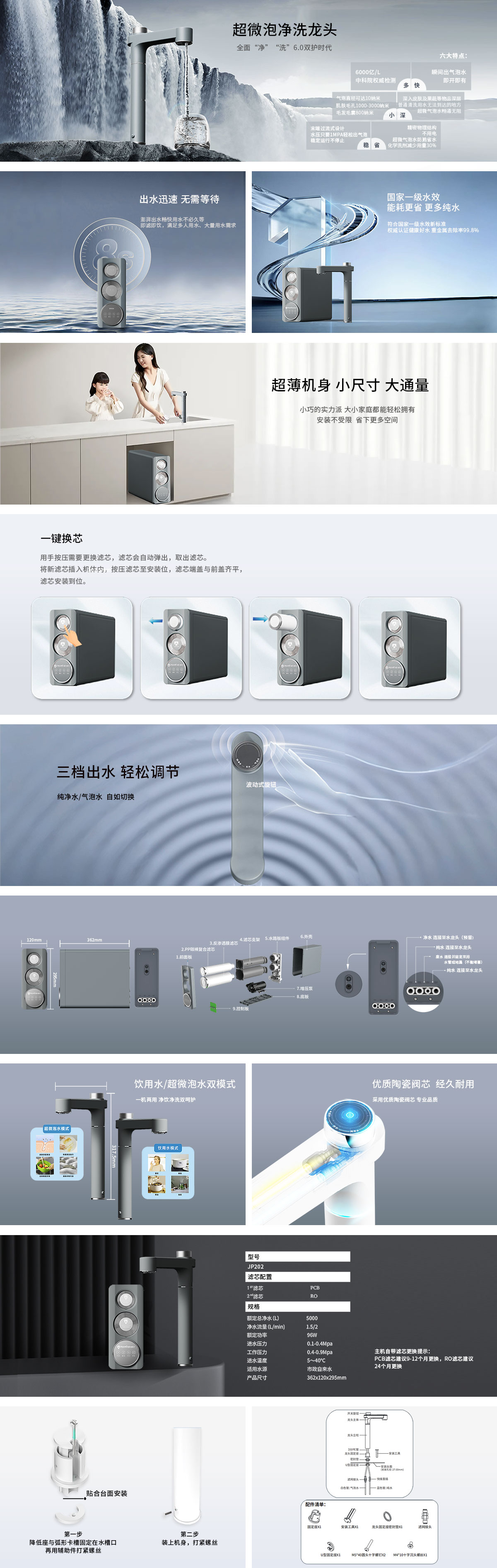 商品亮点:一级水效,一按换芯,大流量出水,双模式制水