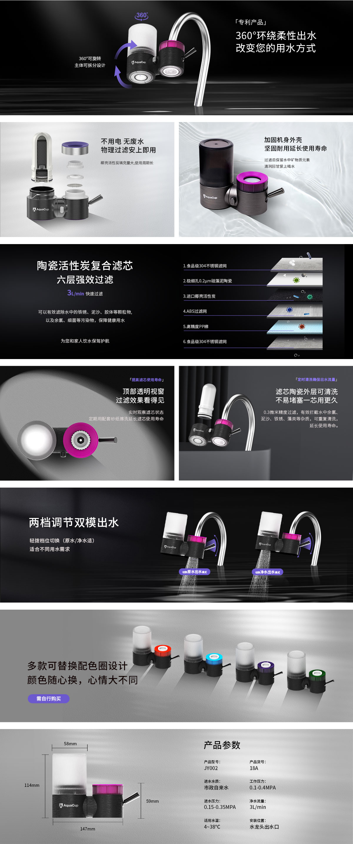商品亮点:六级过滤,柔性增压,双模出水,复合滤芯,加固机身
