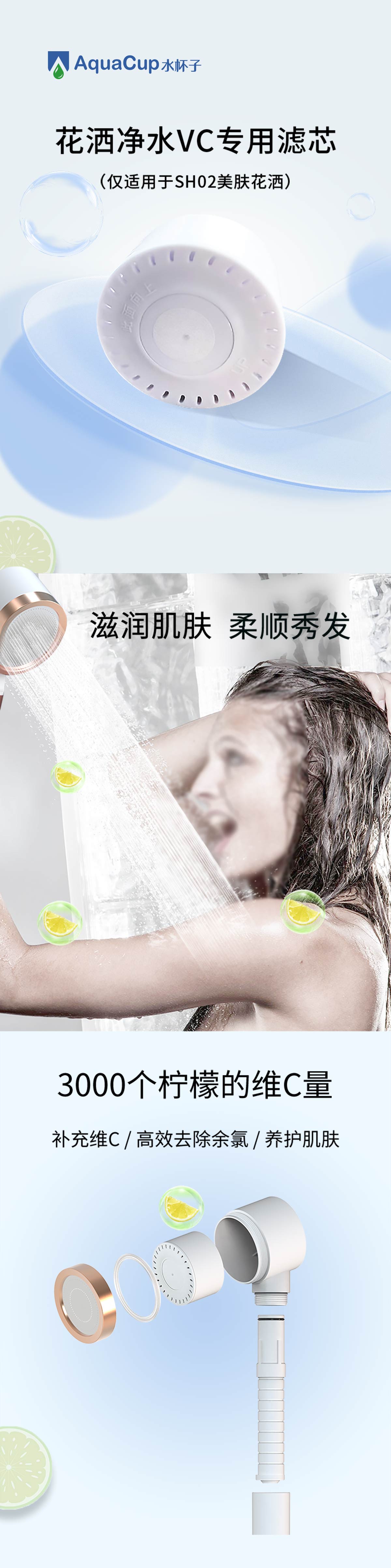 水杯子 AquaCup美肤花洒替换净水VC专用滤芯SH02(适用普通盒装花洒)3个/6个